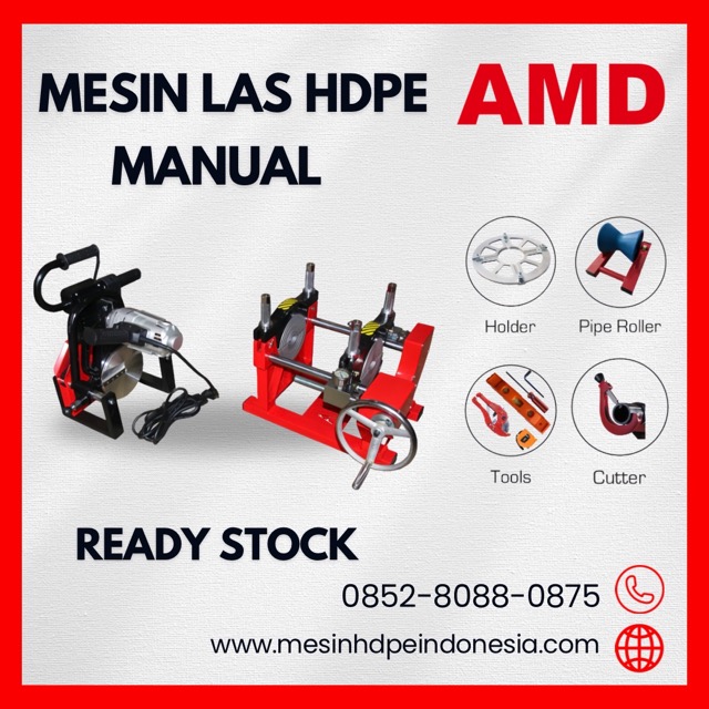 Merupakan Mesin yang digunakan untuk menyambung Pipa dan fitting yang terbuat dari bahan HDPE, PE, PP, PPR dan PVDF. Cara penyambungannya dilakukan dengan butt fusion manual, 2 clamp DN. 50 - 200 mm dengan type L (diputar dengan gear box), Keunggulan Mesin ini mudah digunakan, lebih cepat, ringan dan kuat. Cocok digunakan pada lokasi lapangan maupun didalam bangunan.